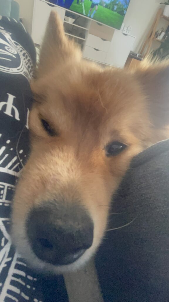 Buddy (the little Pomeranian) is definitely that friend who always has FOMO. You know the one – always peeking around corners like “what’s everyone doing without me?” He probably thinks he’s way bigger than he actually is and tries to protect the house from the mailman every single day. I bet he steals socks and thinks he’s being sneaky about it.