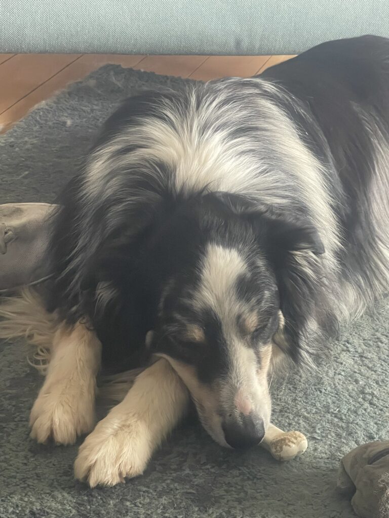 Sadie (the gorgeous Border Collie mix) has that “I’ve seen some things” wisdom in her eyes. She’s probably the type who sighs dramatically when Buddy gets too hyper, but secretly loves him to pieces. I can just picture her gently herding him away from trouble, like when he’s about to eat something he shouldn’t.